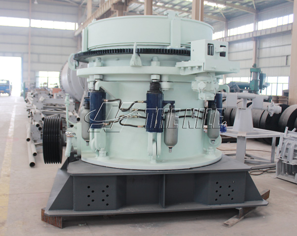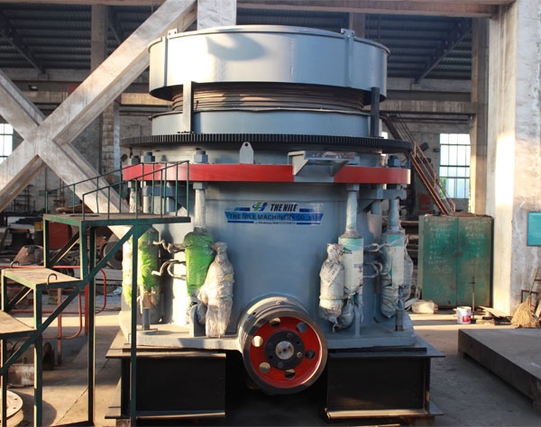 多缸液壓圓錐碎石機工作時電動機通過三角皮帶、傳動軸、傘齒輪副帶動偏心套旋轉(zhuǎn),動錐在偏心套的作用下做旋擺運動使動錐和定錐時而靠近時而偏離。物料在破碎腔內(nèi)不斷受到擠壓、沖擊而被破碎,破碎的物料從下部排出。